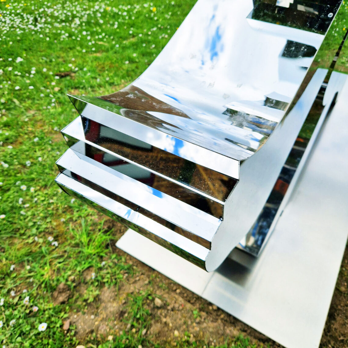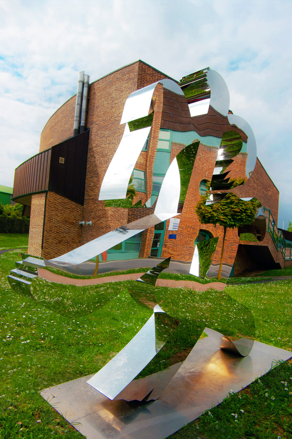 sculpture en inox poli miroir - 230 x 230 x 25 cm