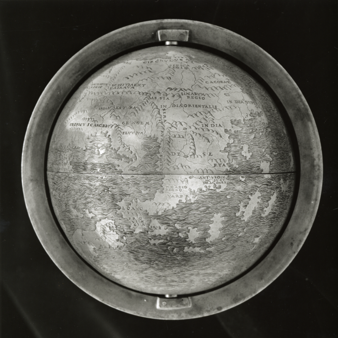 L’expression latine hic sunt dracones (littéralement « ici sont les dragons ») désigne une zone encore inexplorée de la côte Est de l’Asie sur le globe terrestre de Hunt-Lenox. Datant de 1503-1507, Ce globe est à la croisée des mondes : il préfigure la Renaissance et des Lumières, l’exploration scientifique du monde, tout en restant ancré dans l’imaginaire médiéval, où la rationnalité cohabite avec les mythes. Le mystère du vivant est alors au coeur de la mystique chrétienne.