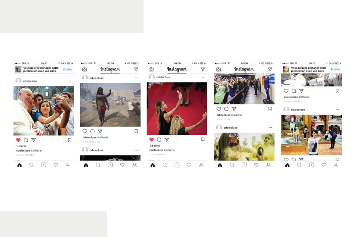 "la likerie" s'insère ainsi par l'humour et l'absurde dans l'écosystème de la valorisation narcissique par les réseaux sociaux. Détournant les protections logicielles, il vient "hacker" le réseau Instagram, en simulant les gestes d'une personne humaine. Une revanche du monde physique sur le monde virtuel ?