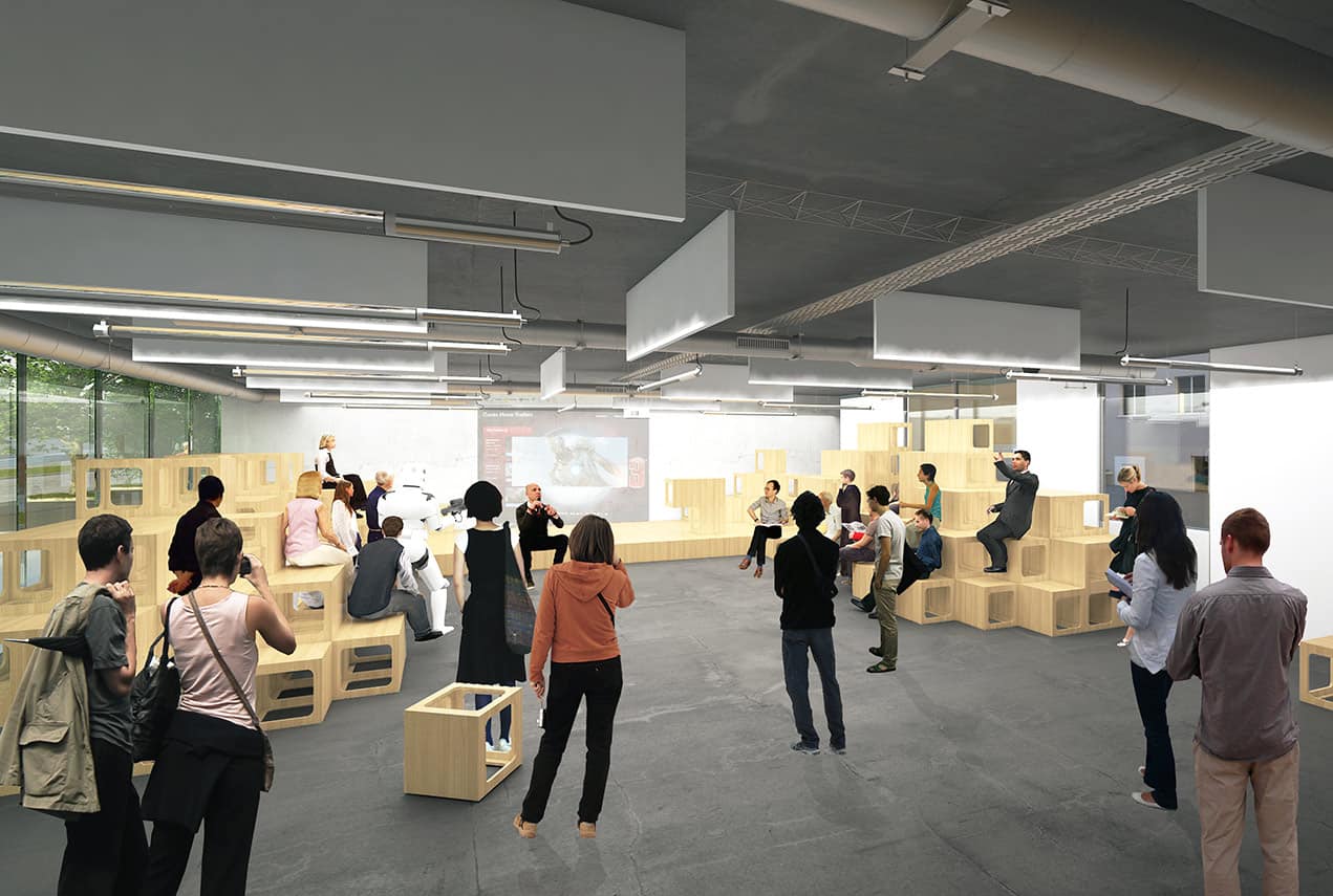 Les rapports entre nature et technologie seront au cœur des interventions artistiques, remettant en question l’idée reçue selon laquelle la technologie éloignerait du corps ou serait opposée à la nature. Le concept romantique de nature sera ainsi confronté à la vision contemporaine d’une nature « technologique », façonnée par l’homme. Une nature à l’origine d’une pensée « naturelle » de la technologie (par exemple par le concept de structure en « arborescence » ou par la géométrie fractale de certaines plantes) sera exposée aux usagers du bâtiment.
